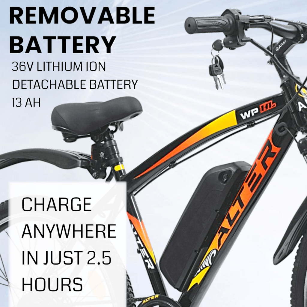 BATTERY : 36V LITHIUM ION DETACHABLE BATTERY 7.8AH/10.4AH