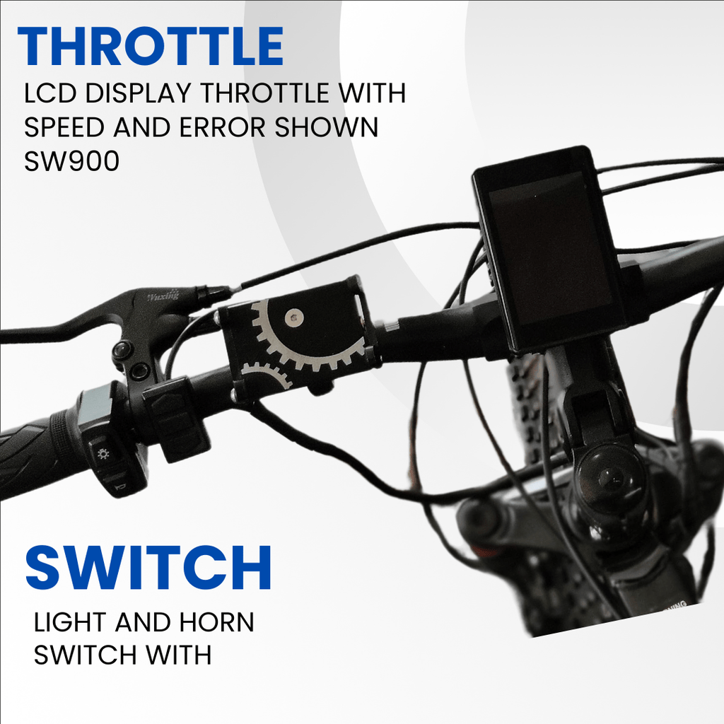- HIGH QUALITY TRANSISTORS USED IN THROTTLE FOR LONG LIFE.ALTER THROTTLE COMES WITH IGNITION SWICTH AND BATTERY INDICATOR LCD DISPLAY SPEED & ERROR SHOWN (SW900).