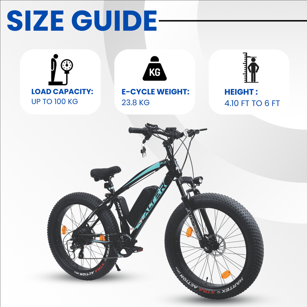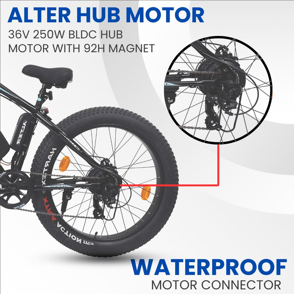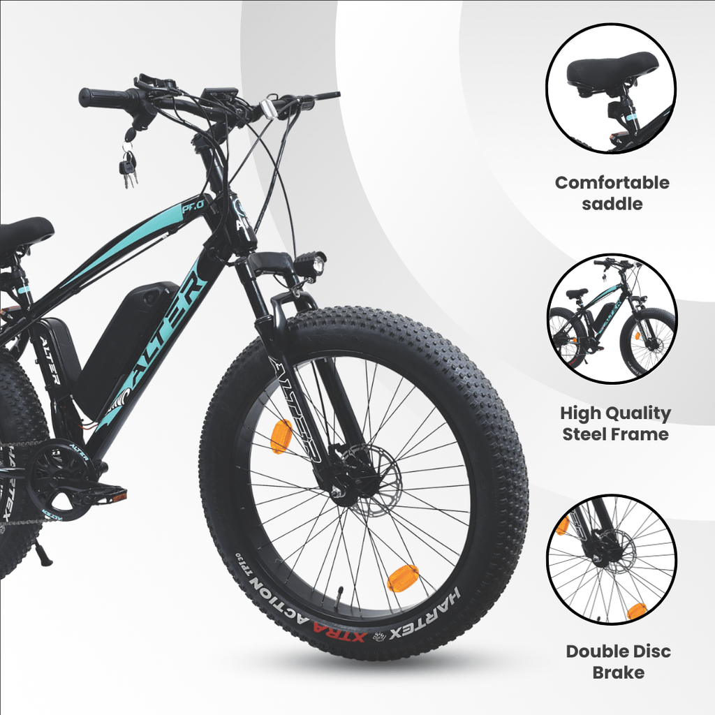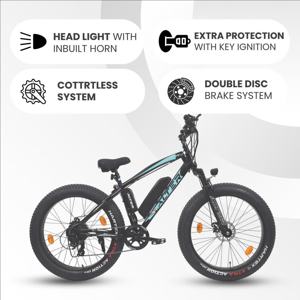 Alter 26" 005 PRO Model Electric Cycle with 36V 500W BLDC HUB Motor | LI-ION REMOVABLEBATTERY | SUITABLE FOR HILLY AREAS | 95% PREASSEMBLED with Charger (AQUA BLUE, 13 AH)