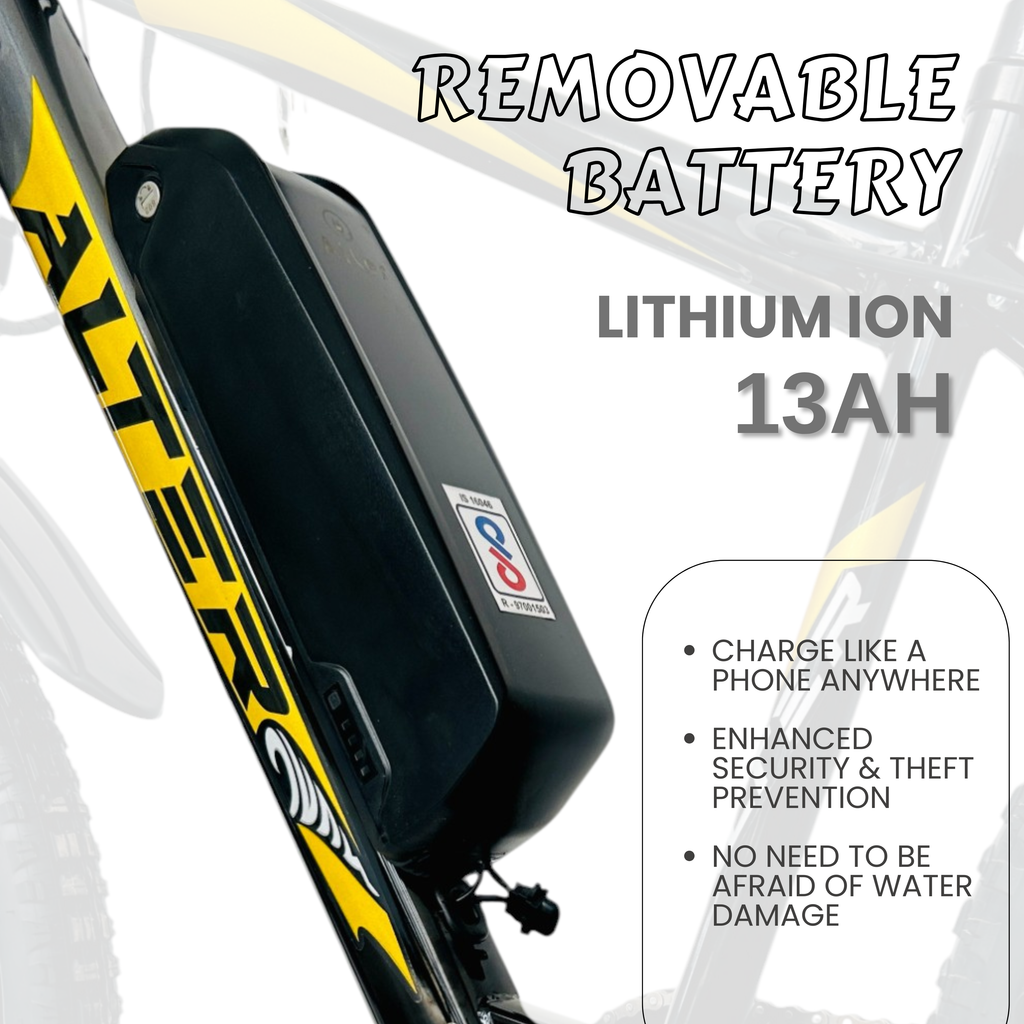 ALTER 26" 003PRO-I MODEL ELECTRIC CYCLE WITH R/L INDICATOR | REMOVABLE LI-ION BATTERY| PAS WITH 5 CONTROL MODE| 95% PRE ASSEMBLED WITH CHARGER